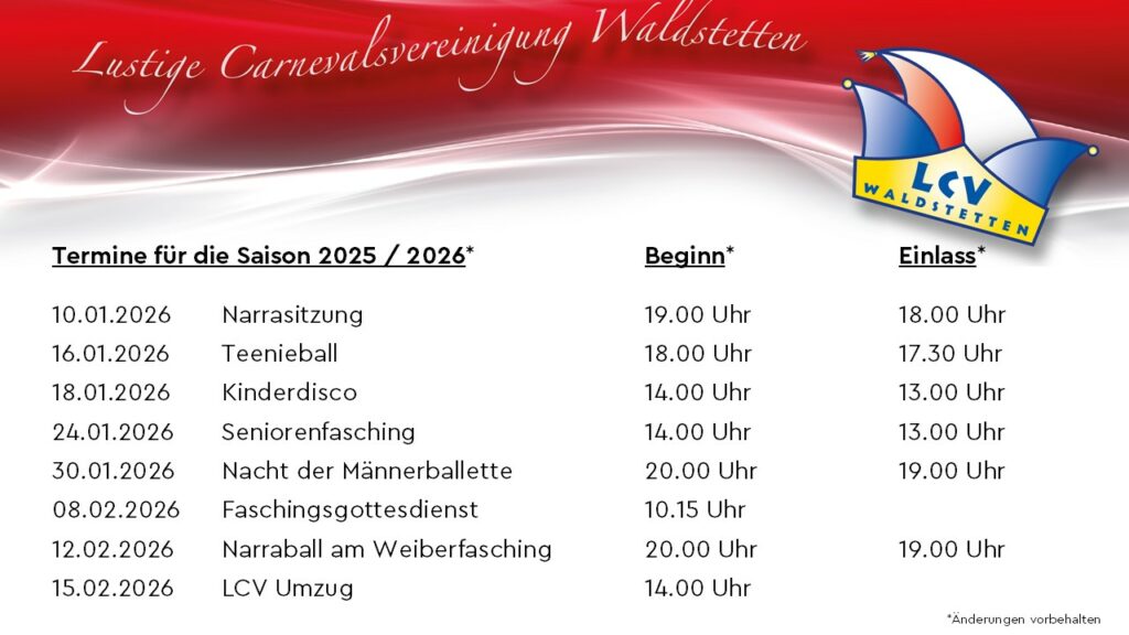Terminanfragen und Buchungen bitte an: vorstandschaft@lcv-waldstetten.de